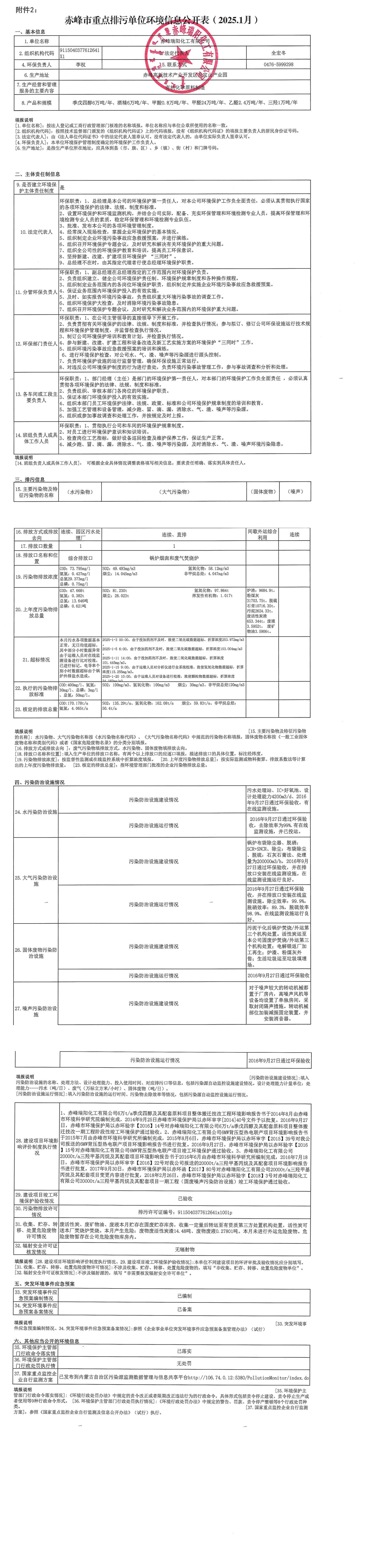 赤峰市重點(diǎn)排污單位環(huán)境信息公開表【2025.01】
